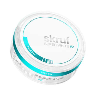 SKRUF Super White #2 Snus hat einen erfrischenden Geschmack von Minze. Die Nikotinbeutel von SKRUF Super White #2 Snus sind tabakfrei, der Inhalt d...